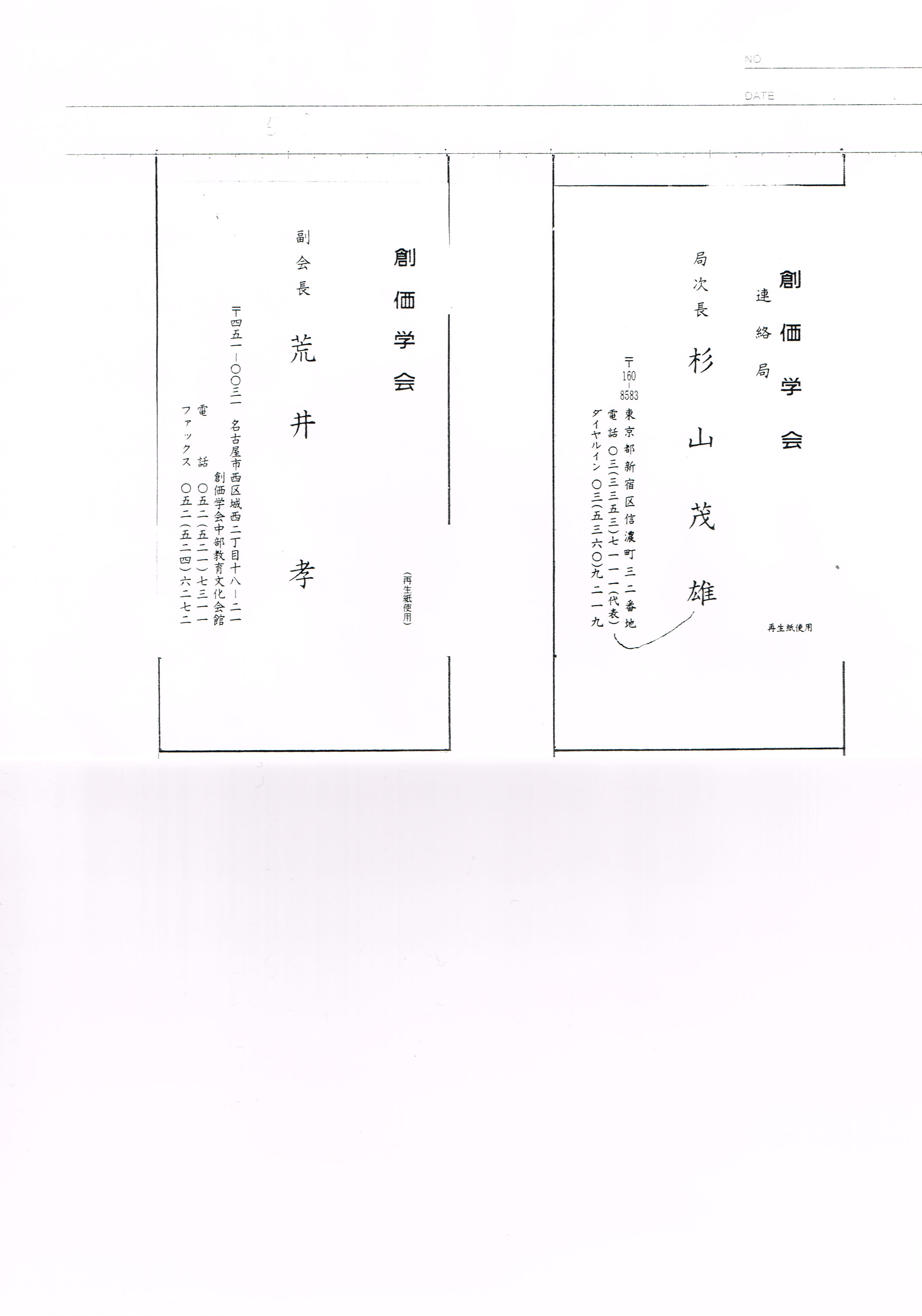 創価学会側:荒井孝(副会長)、杉山茂雄(局次長)